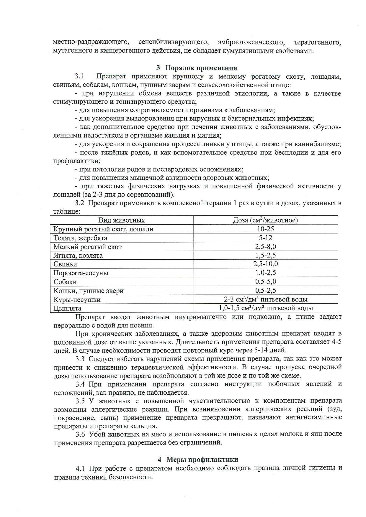• как дополнительное средство при лечении животных с заболеваниями, обусловленными недостатком в организме кальция и магния;