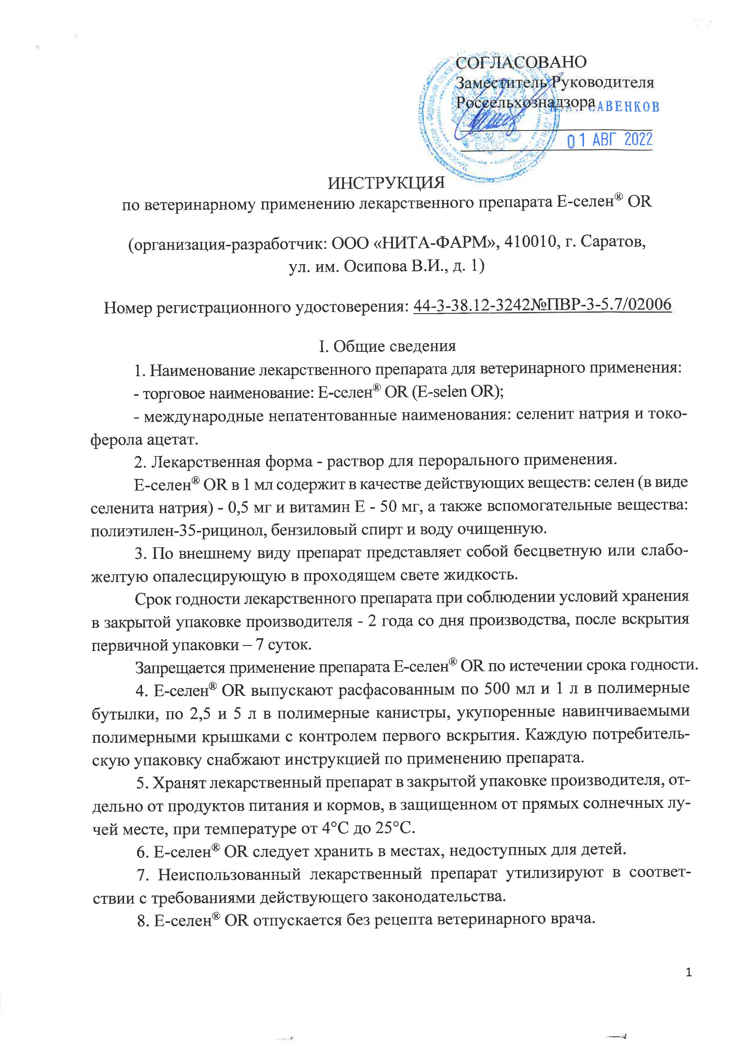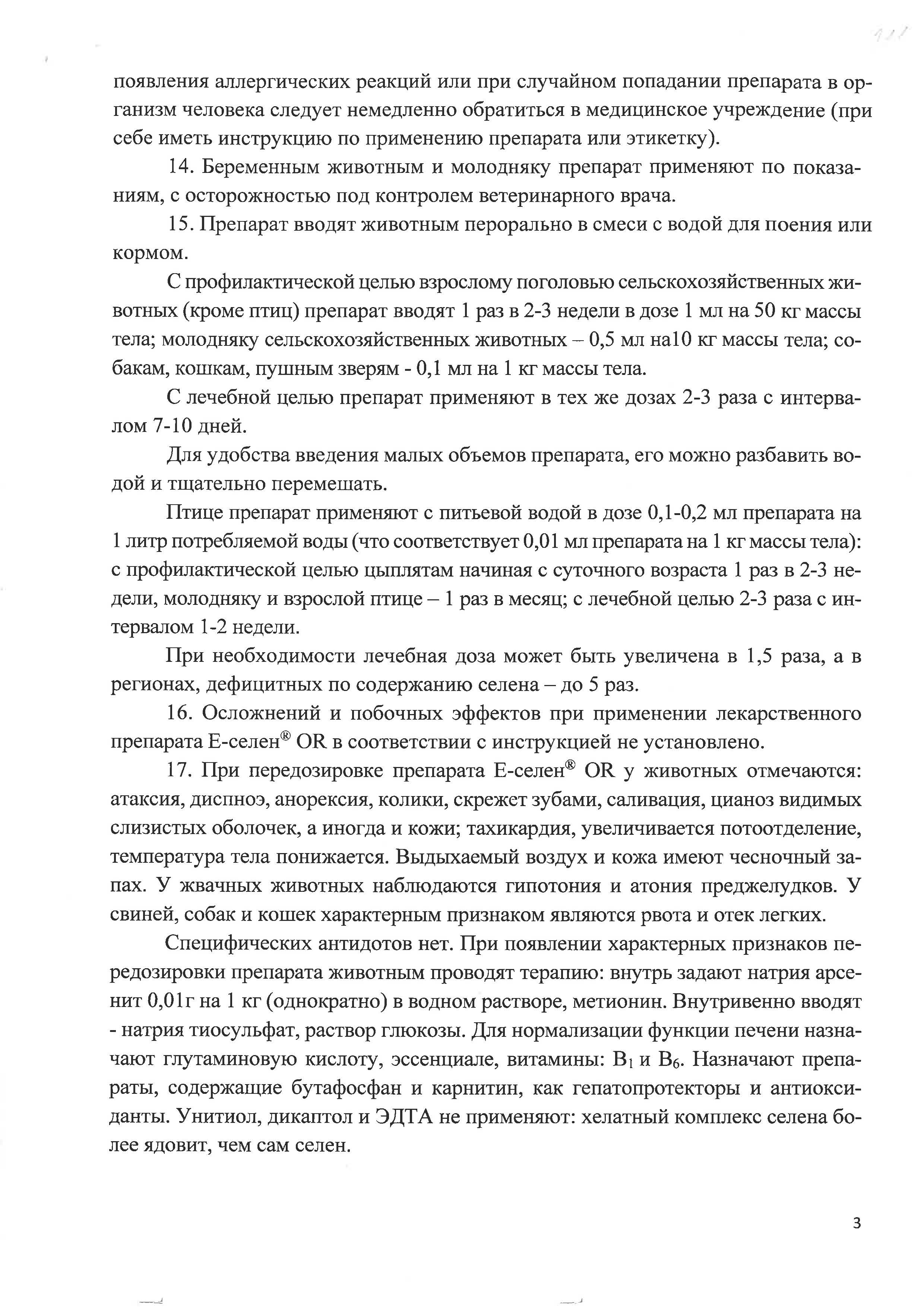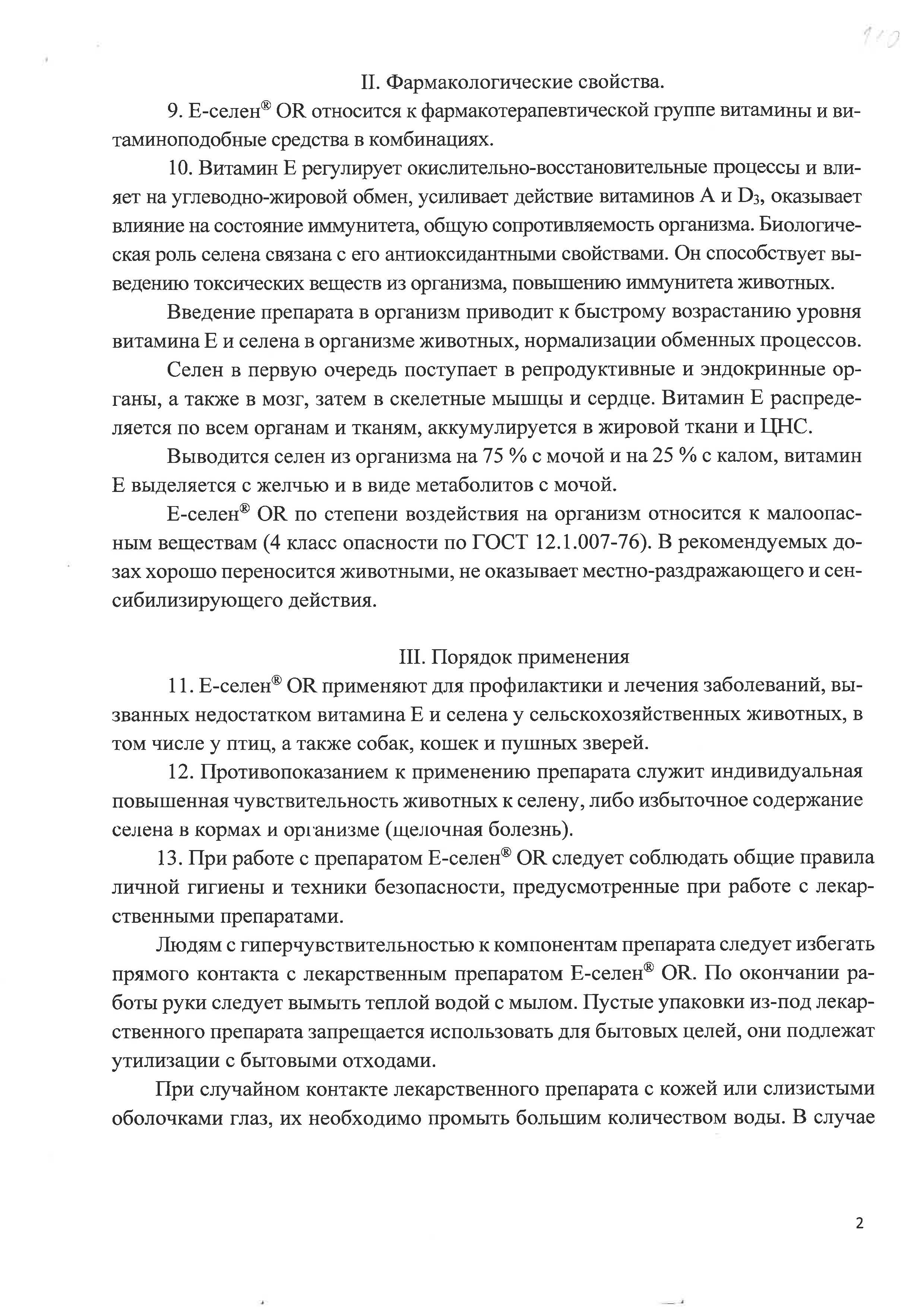 Е-селен® OR применяют для профилактики и лечения заболеваний, вызванных недостатком витамина Е и селена у сельскохозяйственных животных, в том числе у птиц, а также собак, кошек и пушных зверей.