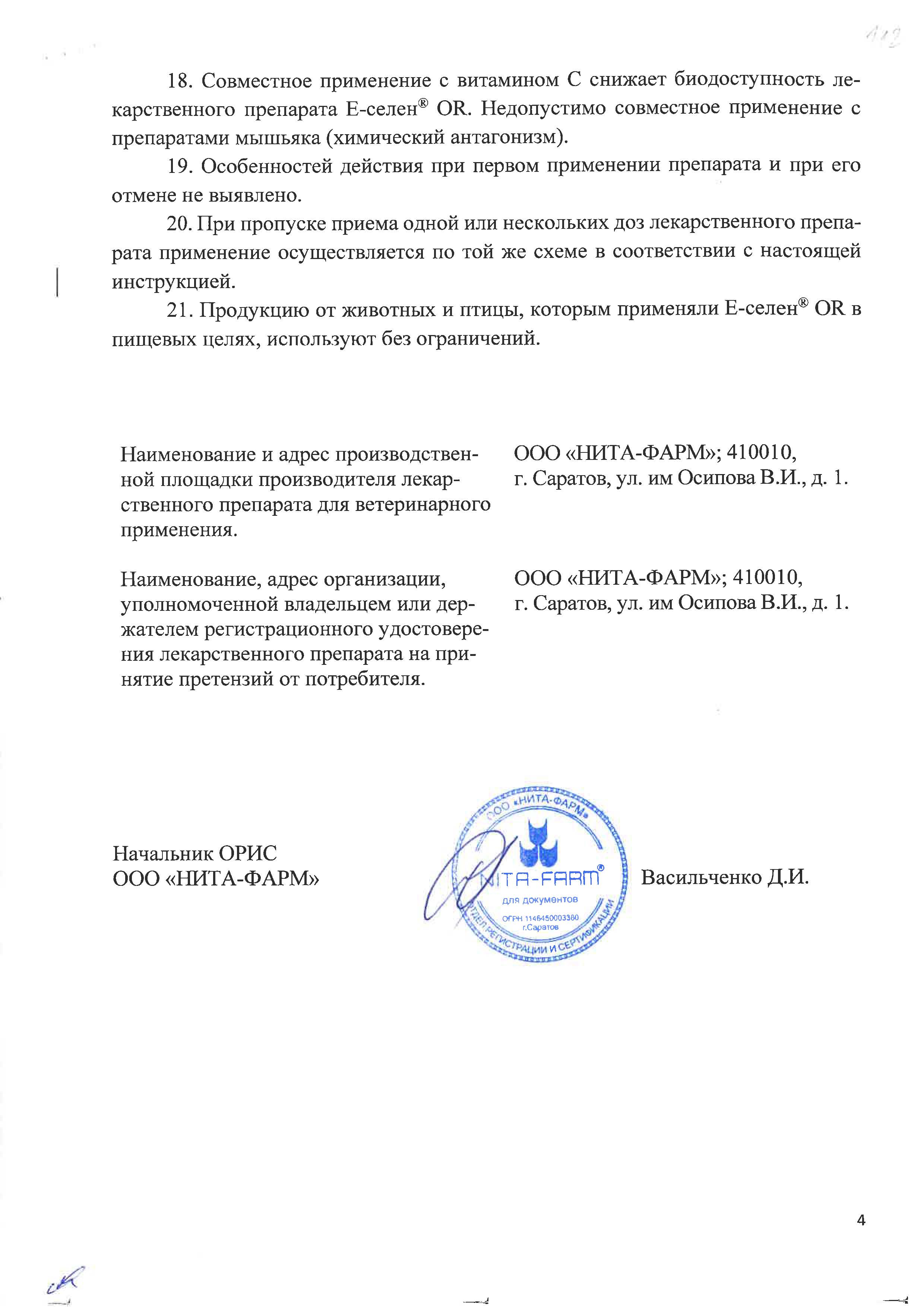 | Производитель (завод/фабрика) | ООО "НИТА-ФАРМ", 410010, г. Саратов, ул. им. Осипова В.И., д. 1, РОССИЯ |