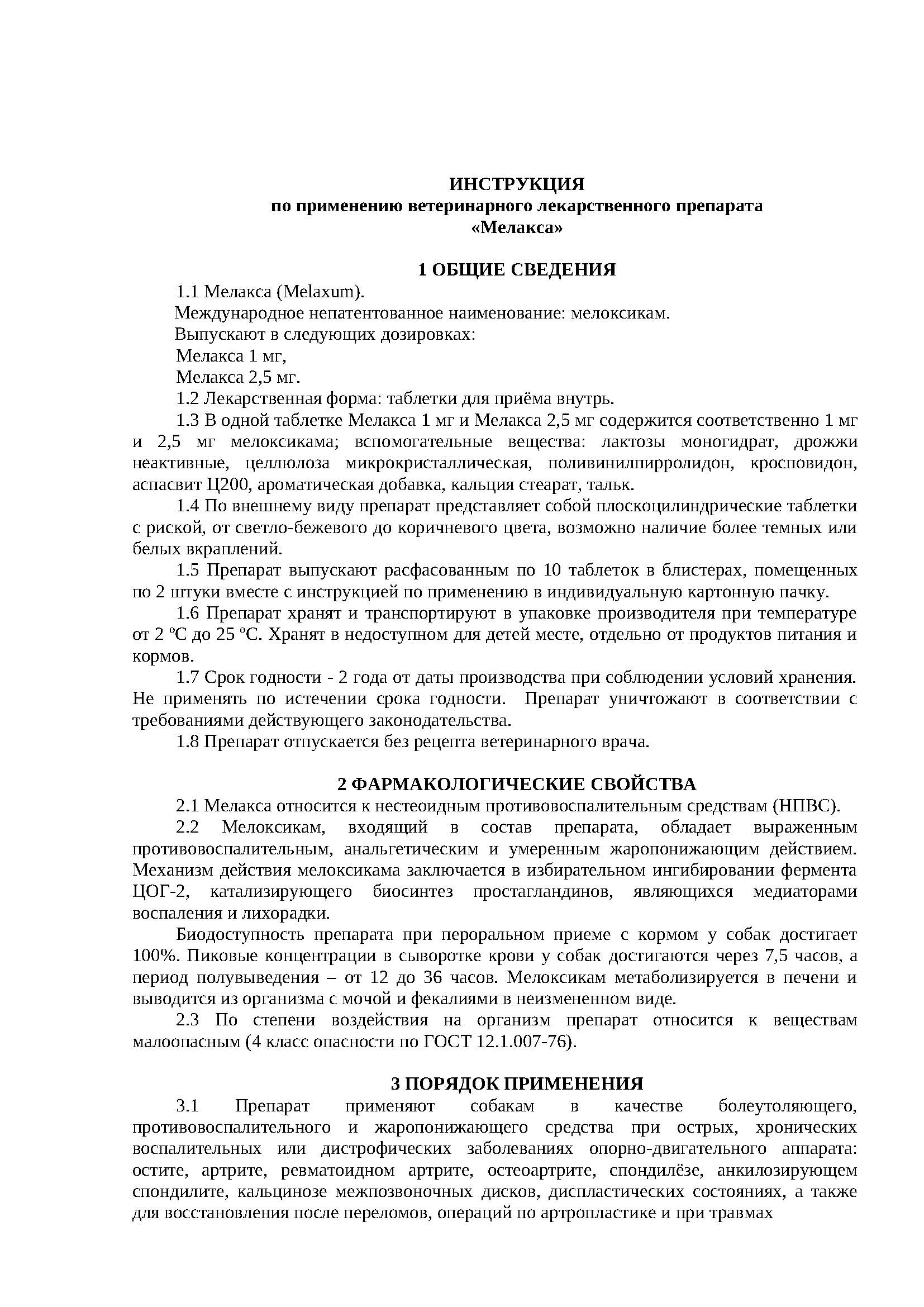 Инструкция: Мелакса