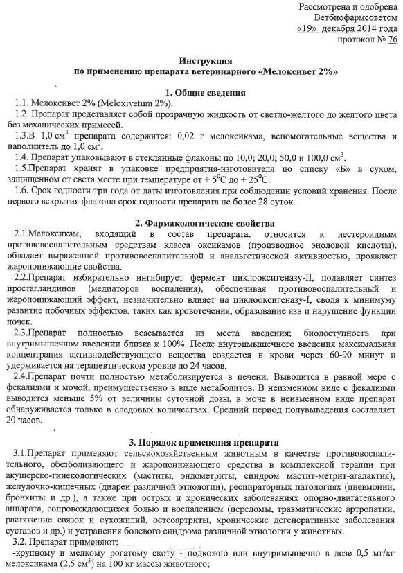 Молоко можно использовать в пищу через 72 часа после применения препарата. До истечения указанного срока ожидания молоко скармливают молодняку сельскохозяйственных животных после предварительного кипячения.
