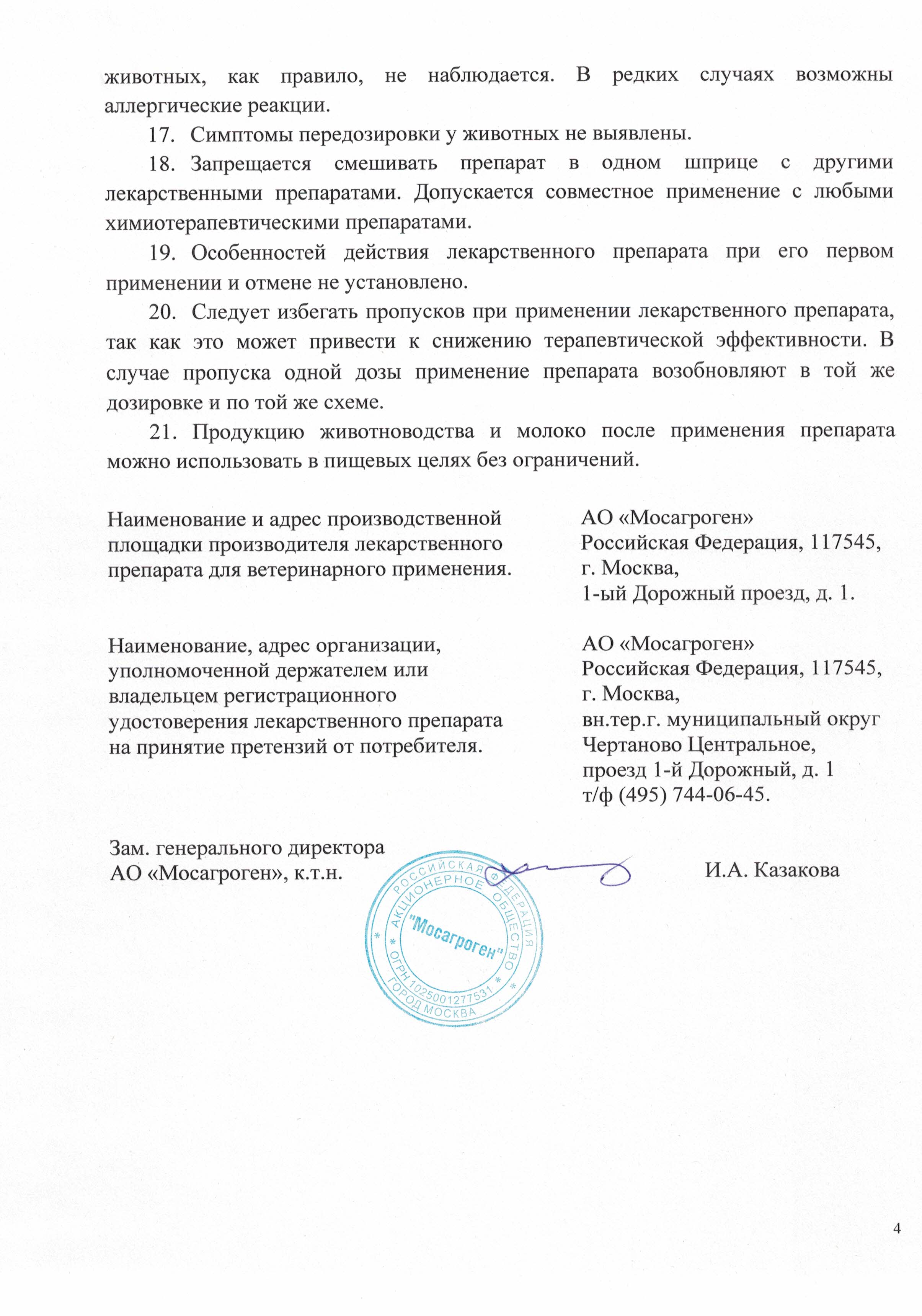 | Производитель (завод/фабрика) | АО «Мосагроген», 117545, г. Москва, 1-ый Дорожный проезд, д.1, РФ |