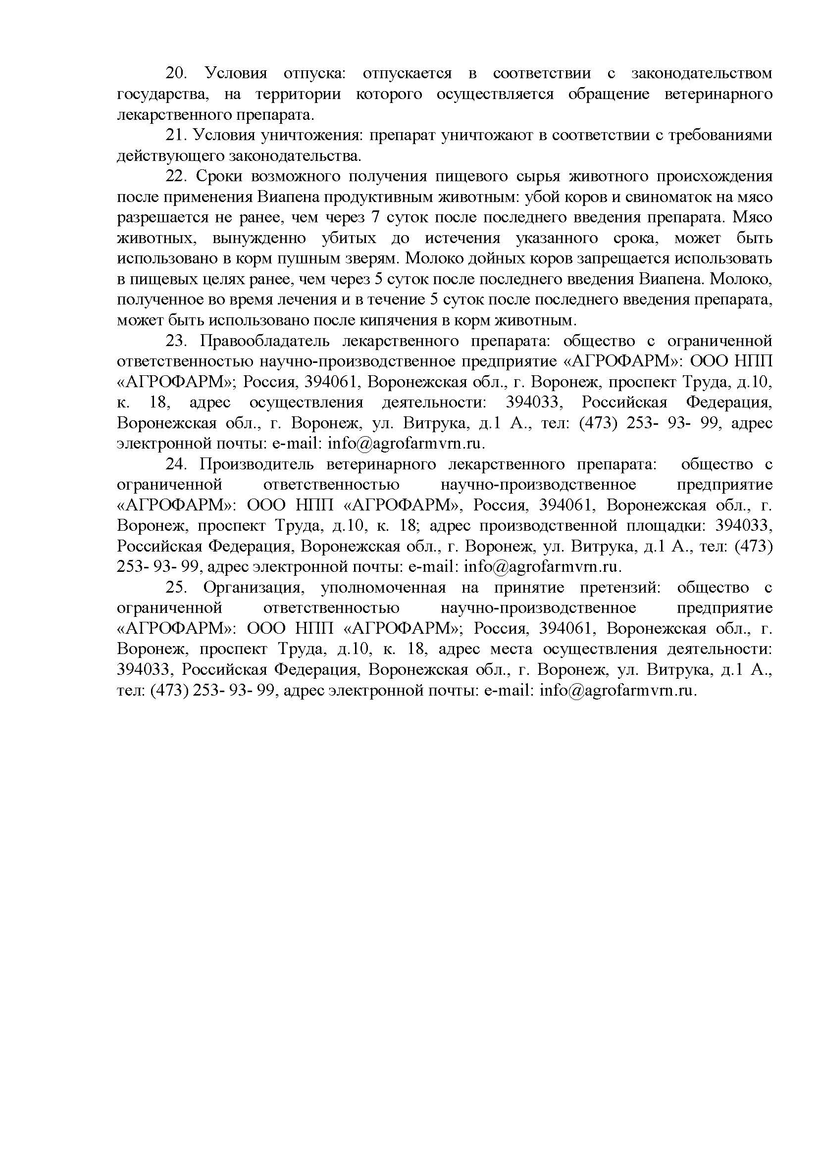 | Производитель (завод/фабрика) | ООО НПП "Агрофарм" 394033, г. Воронеж, ул. Витрука, 1А, РФ |