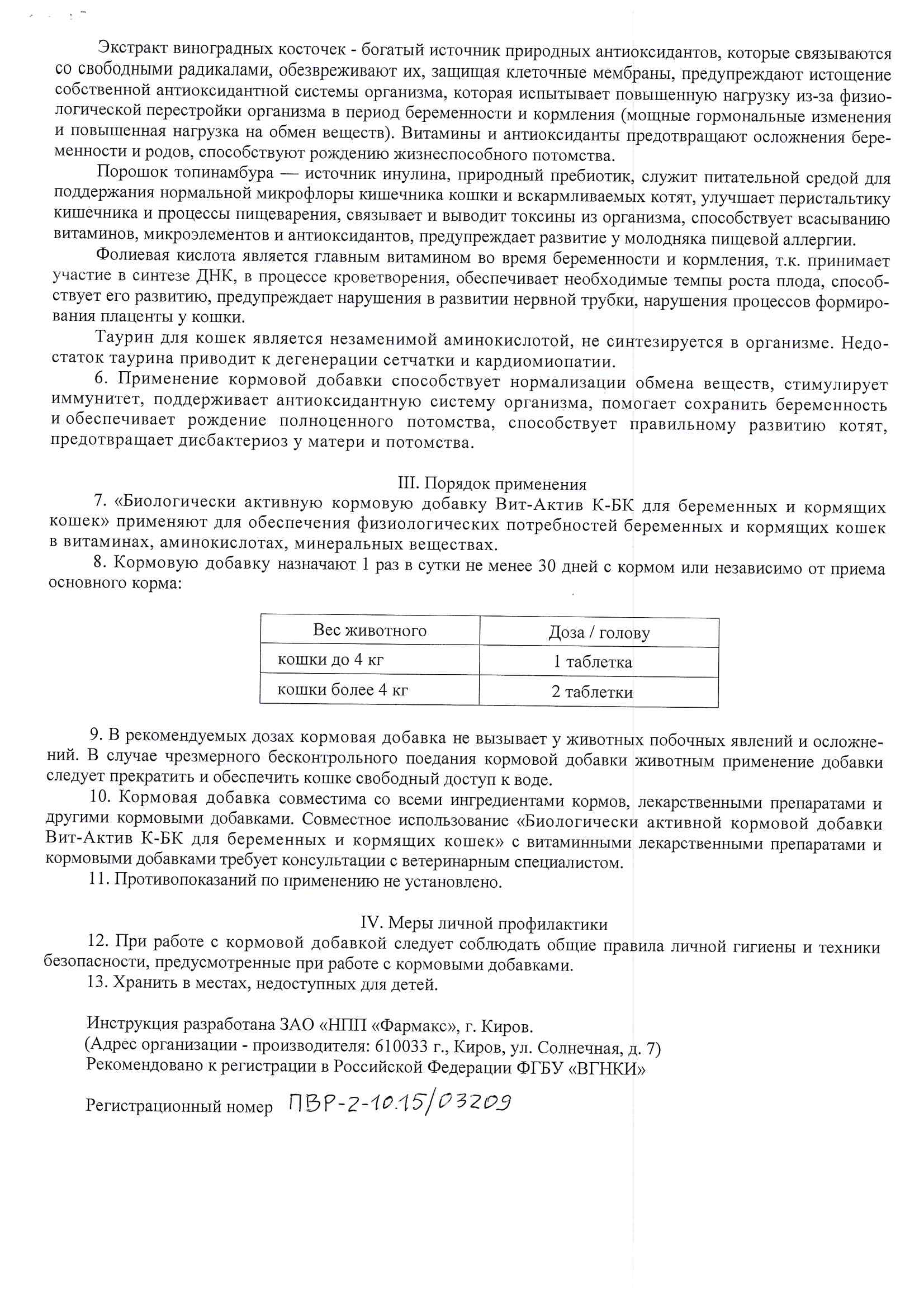 Вит-Актив – витаминно-минеральный комплекс для обеспечения физиологических потребностей беременных и кормящих кошек в витаминах, аминокислотах и минеральных веществах, обогащения рациона природными антиоксидантами и пребиотиками.