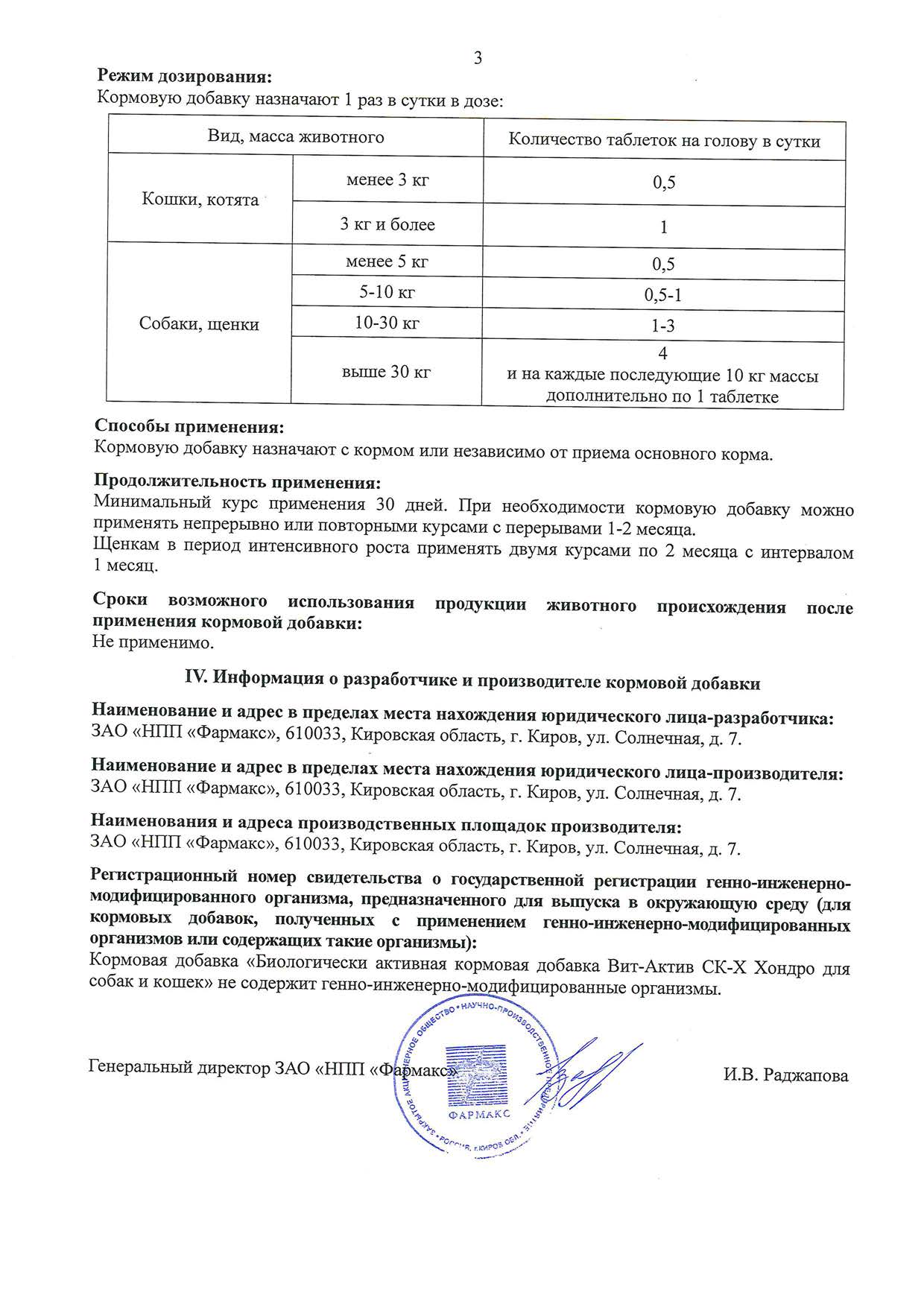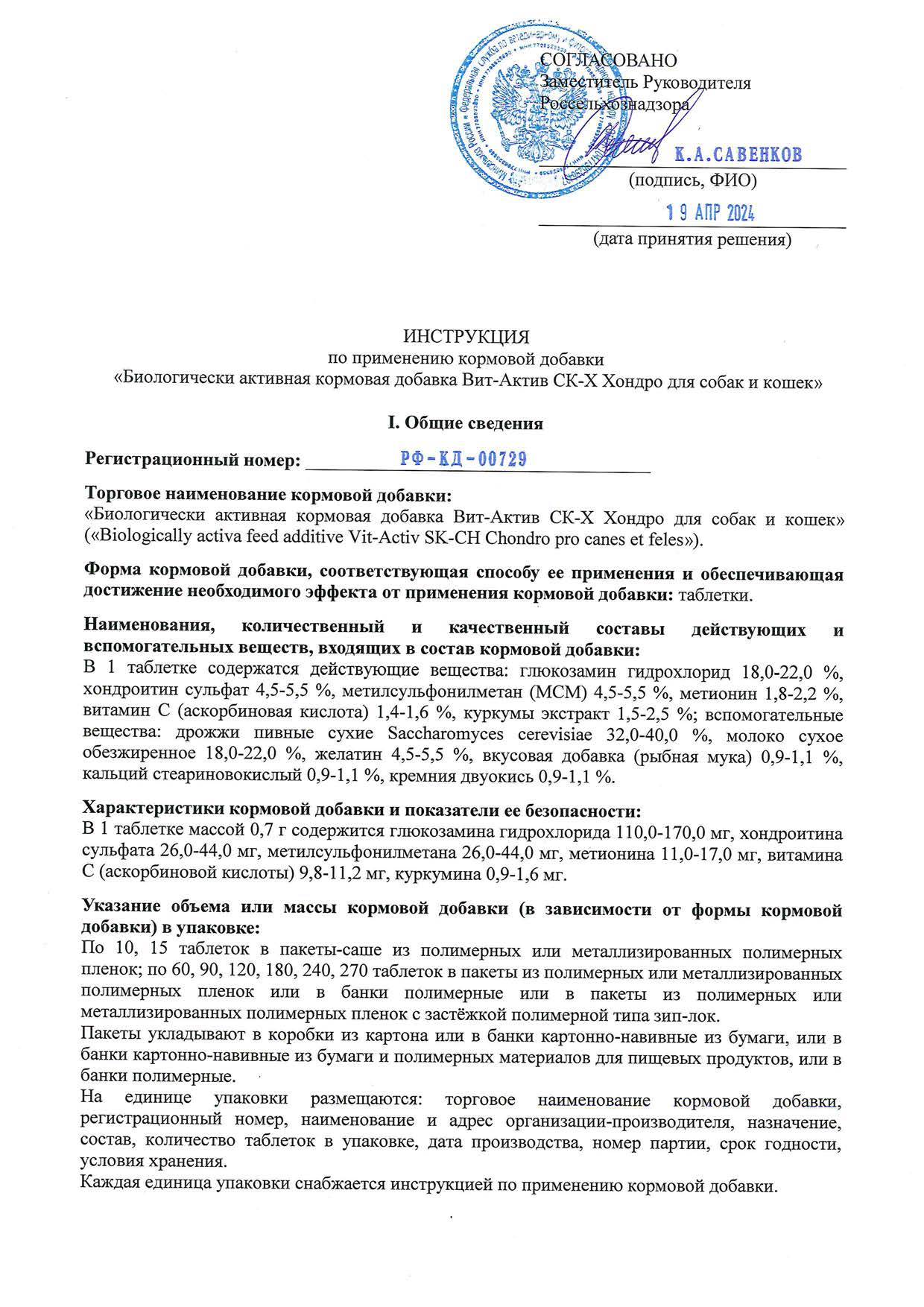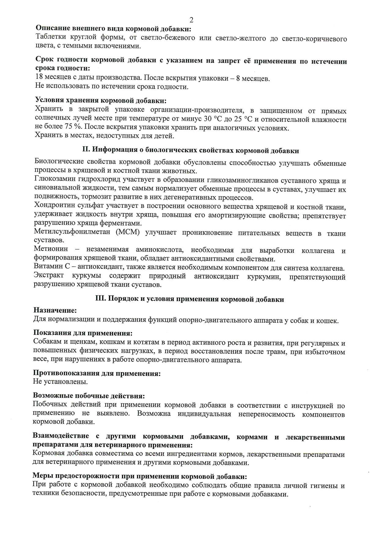 Вит-Актив Хондро – комплекс биологически активных веществ для нормализации и поддержания функций опорно-двигательного аппарата собак и кошек: